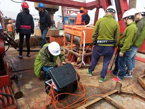 ?武漢天宸物探TS-K100超聲成孔成槽檢測(cè)儀舟山魚(yú)山大橋成孔檢測(cè)現(xiàn)場(chǎng)