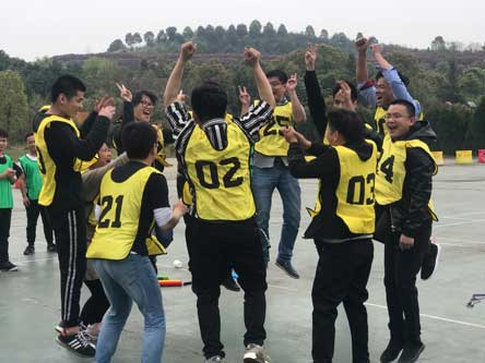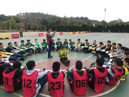 首先,在教練的安排下,員工分組建團,定隊名、隊歌和口號