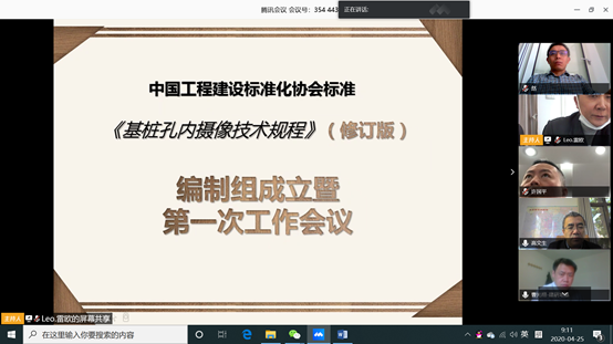 2020年4月25日,中國(guó)工程建設(shè)協(xié)會(huì)標(biāo)準(zhǔn)《基樁孔內(nèi)攝像檢測(cè)技術(shù)規(guī)程》編制組成立暨第一次工作會(huì)議福建省建筑科學(xué)研究院召開,因受疫情影響,此次會(huì)議采取“視頻會(huì)議”的形式召開,我公司作為《基樁孔內(nèi)攝像檢測(cè)技術(shù)規(guī)程》主要參編單位,公司總經(jīng)理夏代林博士參與了此次啟動(dòng)會(huì)議。會(huì)議主要由主編單位匯報(bào)編制內(nèi)容,確定規(guī)程架構(gòu)和編寫分工。