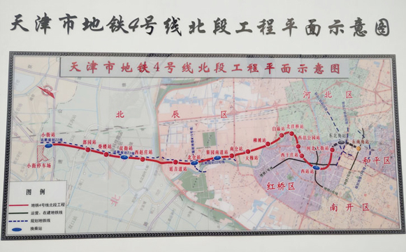 4號(hào)線北段工程屬于4號(hào)線的一部分,北起北辰區(qū)小街,南至紅橋區(qū)河北大街,沿線經(jīng)過(guò)北辰區(qū)、河北區(qū)、紅橋區(qū),正線全長(zhǎng)約22公里,設(shè)17座車(chē)站。