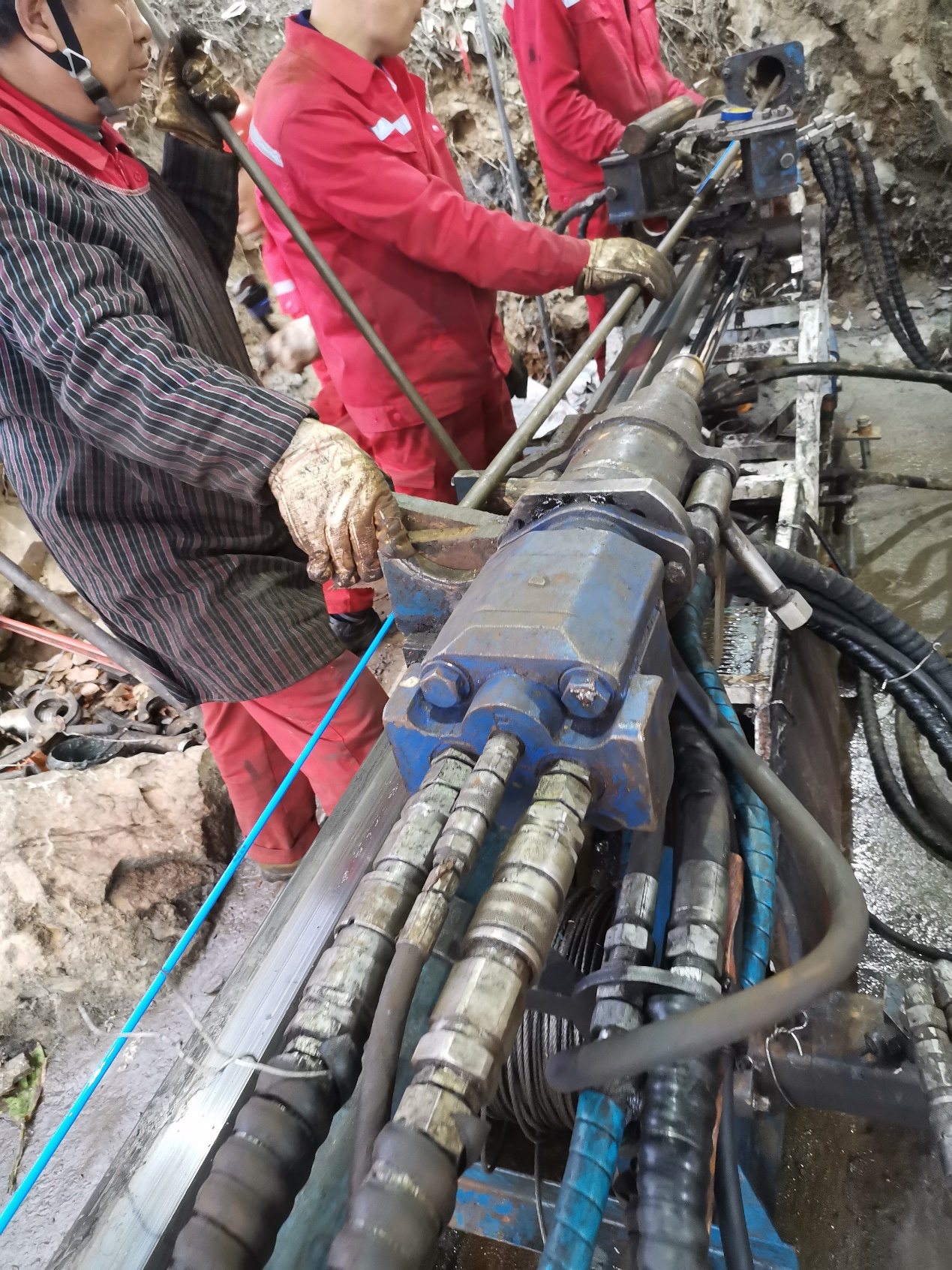 武漢天宸偉業(yè)物探科技有限公司厚積薄發(fā)一舉突破3項難題:其一,電源技術(shù)革新,在無外接電源情況下儀器滿性能現(xiàn)場持續(xù)工作達(dá)10小時以上,滿足野外工作需求;其二,對于水平深孔探頭推進(jìn),結(jié)合現(xiàn)場開創(chuàng)性提出鉆機推進(jìn)措施,避免人為推進(jìn)造成數(shù)據(jù)采集速度不均、節(jié)省現(xiàn)場工作人員體力以及避免人員操作不當(dāng)造成干擾,使得采集數(shù)據(jù)更為穩(wěn)定、有效,提高工作效率;其三,經(jīng)過研發(fā)人員不懈努力,一舉突破水平孔產(chǎn)狀算法問題,經(jīng)現(xiàn)場取芯驗證比對一致,數(shù)據(jù)結(jié)果得到業(yè)主認(rèn)可和業(yè)內(nèi)高度評價。