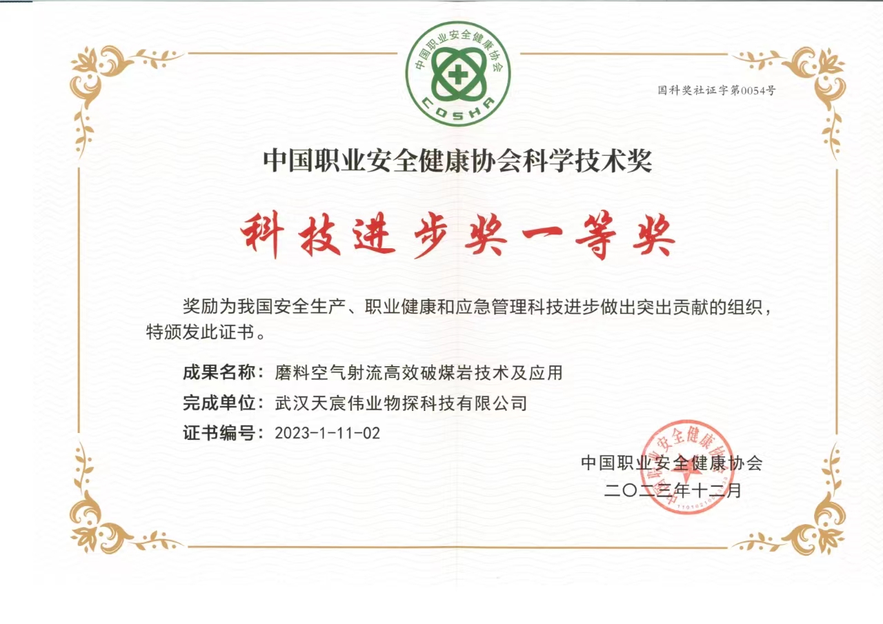 近日,天宸物探參與研究的“磨料空氣射流高效破煤巖技術(shù)及應(yīng)用”項(xiàng)目榮獲河南省人民政府頒發(fā)的河南省科學(xué)技術(shù)進(jìn)步獎(jiǎng)二等獎(jiǎng)及中國(guó)職業(yè)安全健康協(xié)會(huì)頒發(fā)的科學(xué)技術(shù)進(jìn)步獎(jiǎng)一等獎(jiǎng)。