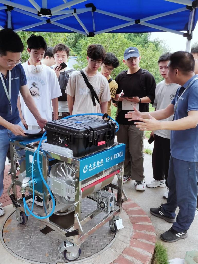 武漢天宸組織了公司技術(shù)人員分組帶領(lǐng)學(xué)生們開展實(shí)踐工作。本次實(shí)踐主要內(nèi)容為超聲成孔成槽質(zhì)量檢測、聲波透射法基樁檢測、鉆孔測斜及低應(yīng)變檢測原理、方法和實(shí)際操作演練。