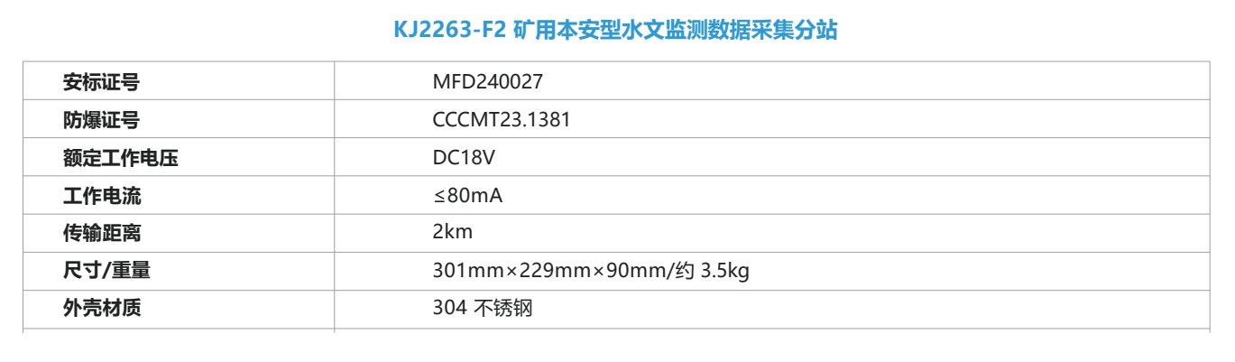 KJ2263-F2 礦用本安型水文監(jiān)測(cè)數(shù)據(jù)采集分站適用于有瓦斯和煤塵爆炸危險(xiǎn)的礦井下,是水文監(jiān)測(cè)系統(tǒng)的傳感器的顯示和狀態(tài)報(bào)警部分,可作為礦用水文監(jiān)測(cè)點(diǎn)的傳感器顯示及報(bào)警器。 ?