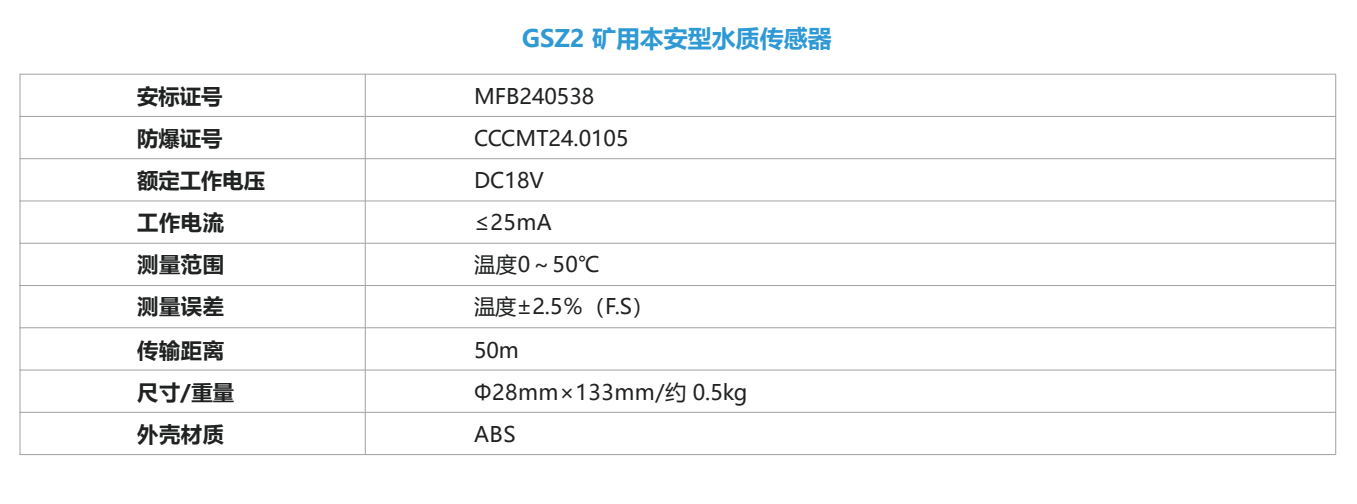 GSZ2 礦用本安型水質(zhì)傳感器適用于有瓦斯和煤塵爆炸危險(xiǎn)的礦井下,是水文監(jiān)測系統(tǒng)的傳感器部分,可作為礦用水文監(jiān)測點(diǎn)的水質(zhì)感知采集器。 ?