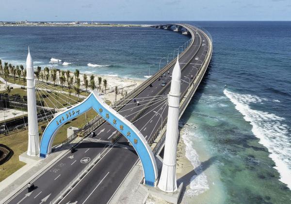 中馬友誼大橋,即馬爾代夫馬累-機(jī)場跨海大橋,是中馬兩國元首與2014年9月15日確立的中國援建馬爾代夫的大型工程項(xiàng)目,標(biāo)志著兩國建立面向未來的全面友好合作關(guān)系。該橋位于馬爾代夫北馬累環(huán)礁,跨越Gaadhoo Koa海峽,連接環(huán)礁上馬累島、機(jī)場島(瑚湖爾島)和胡魯馬累島三個相鄰島嶼,是馬爾代夫最重要的島嶼連接線工程。項(xiàng)目起點(diǎn)位于馬累島東南角,順接規(guī)劃BoduthakurufaanuMagu道路,隨后設(shè)置橋梁跨越Gaadhoo Koa海峽,在機(jī)場島南段登陸,大橋接線與機(jī)場島Hulhumale規(guī)劃路順接。